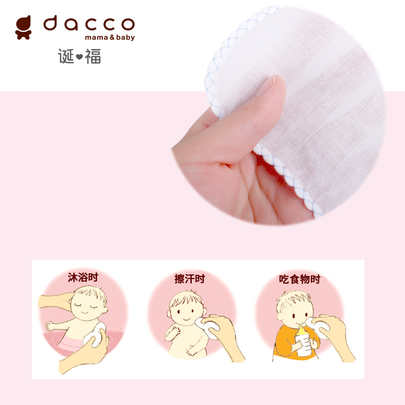 dacco旗舰店dacco诞福婴儿纱布手帕纯棉新生儿宝宝口水巾洗脸巾儿童小方巾无荧光剂 触感柔软透气 吸水性好