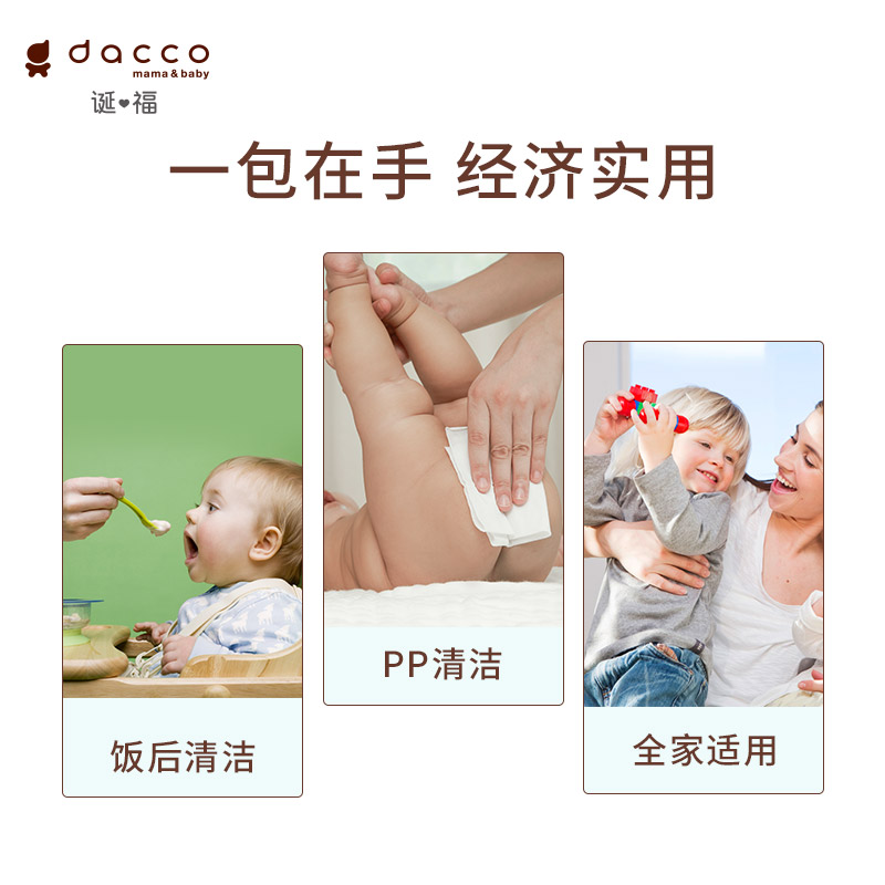 • dacco旗舰店dacco(原三洋)诞福婴儿湿巾宝宝新生儿幼儿擦手擦屁股便携纸巾01/4